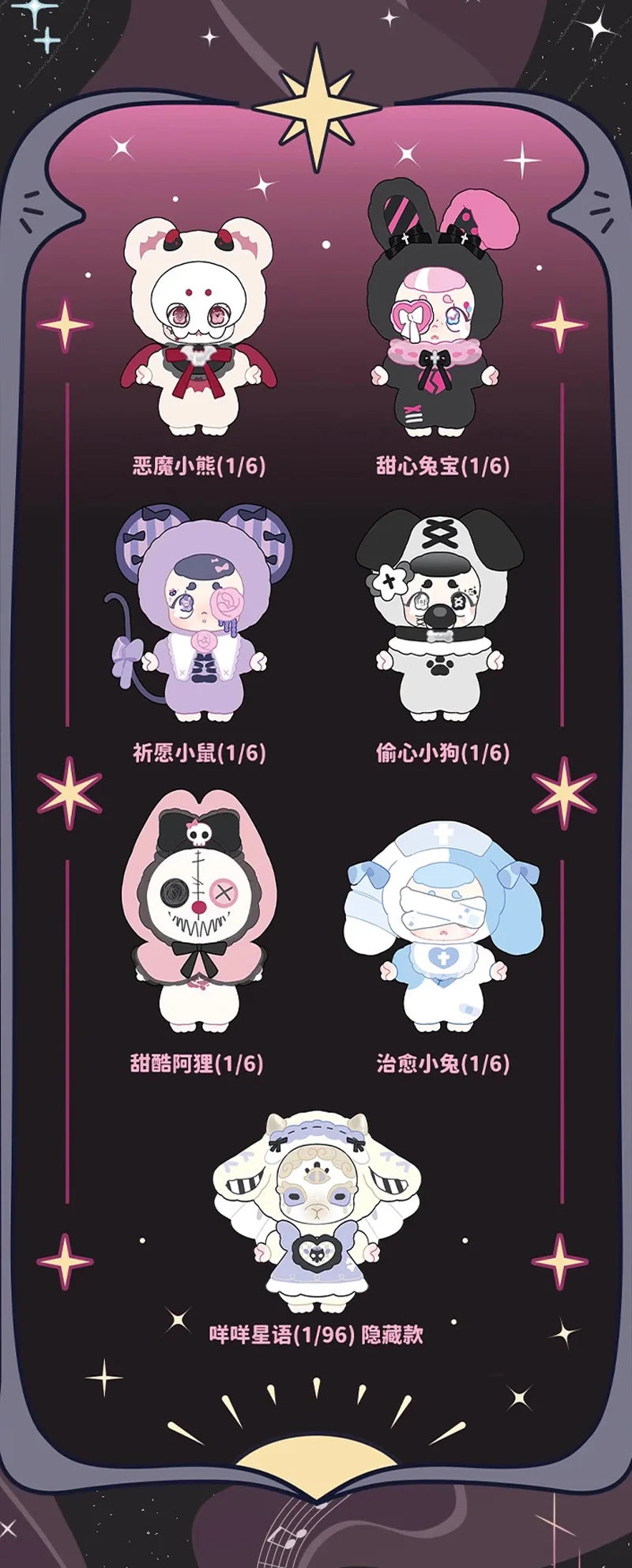 Dark Fantasy Aesthetic – Dive into a surreal world where dreams meet a touch of spooky! Each plush figure blends cuteness with gothic charm, featuring stitched eyes, masks, crosses, and eerie-sweet expressions.