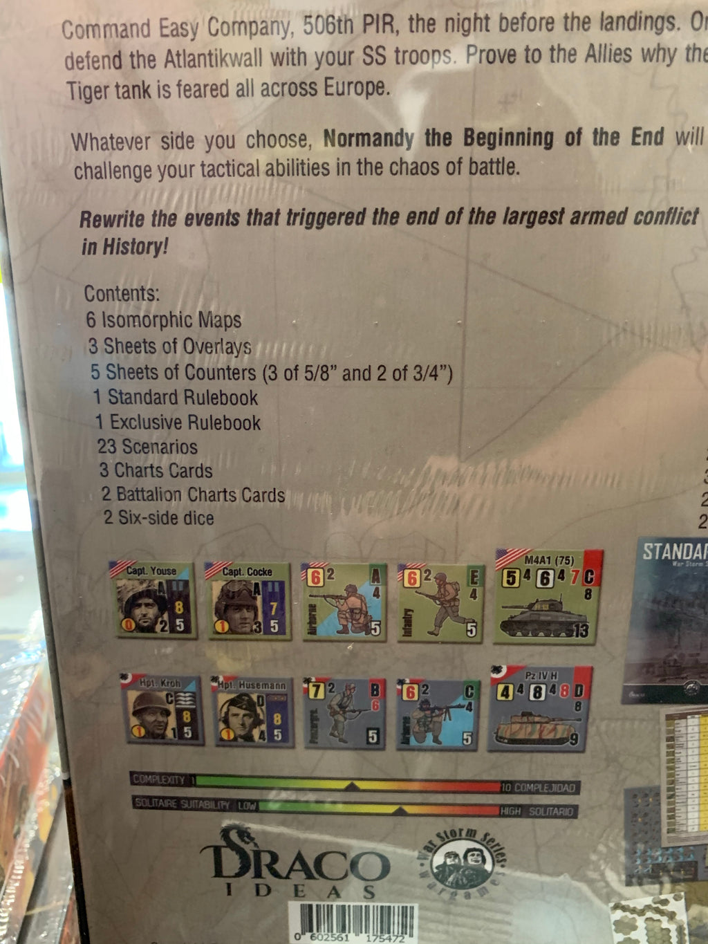 Normandy: The Beginning of the End is a standalone game in the War Storms series. Recreates the events of those days and allows the players to reproduce the most famous battles of the D-Day on the American beaches at a tactical level. Players take command of either the Allied or Axis forces (or can play solitaire) in the tactical battles of each scenario.