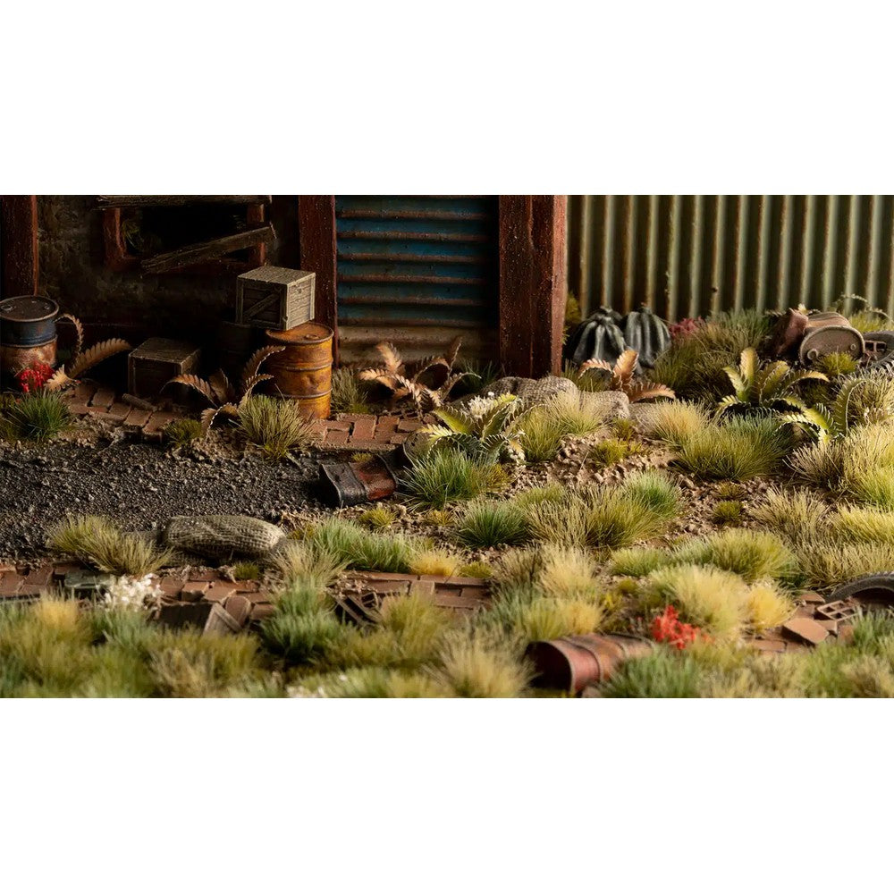 Tall, dry, light coloured tufts with a greenish base. Best used to simulate Mediterranean types of tall grasslands, shrublands, and woodland ground layers. Used together with different sizes and colours will increase realism and diversity to your bases and dioramas.