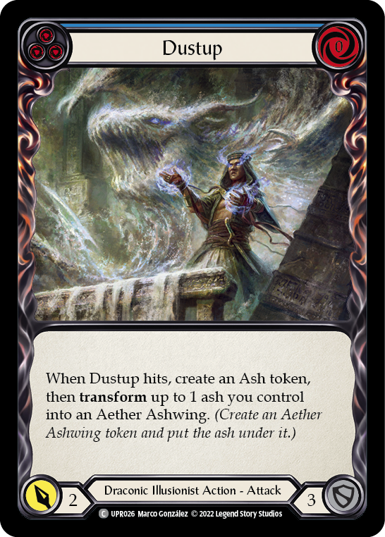 When Dustup hits, create an Ash token, then transform up to 1 ash you control into an Aether Ashwing. (Create an Aether Ashwing token and put the ash under it.)