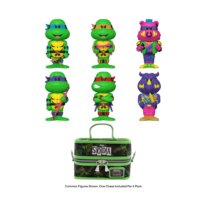 Comes with LoungeFly x Funko SODA Cooler bag and 6 TMNT Soda Figures with a chance for chases.