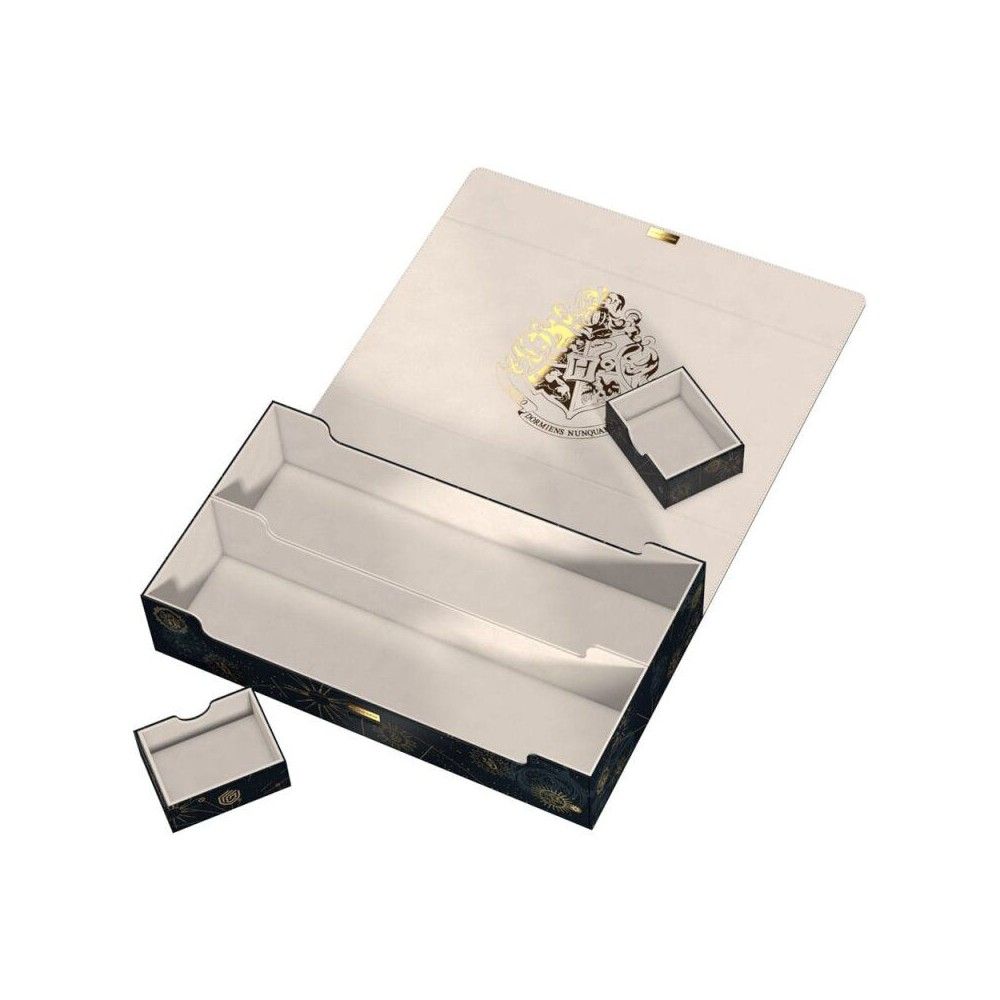 Experience the magic of Hogwarts with the Omnihive 1000+ Xenoskin Harry Potter from Ultimate Guard. The mass storage box made of durable Xenoskin material is designed to store several deck boxes, dice and/or play-mats, or alternatively up to 1000 double-sleeved cards at the same time. The Omnihive and the two practical and flexibly positionable magnetic trays inside have a soft microfibre interior. The lid is secured with strong magnets and Ultimate Guard's ZnapClaw mechanism.