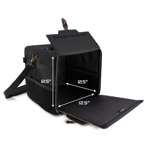 A collapsible gaming storage bag designed to hold your favorite board games makes it easy to store and travel with your games. The reinforced sides of the Game Box Shoulder Bag are made with a layer of padded foam lined with a polymer sheet that creates a semi-rigid shell for protecting your board games during travel.