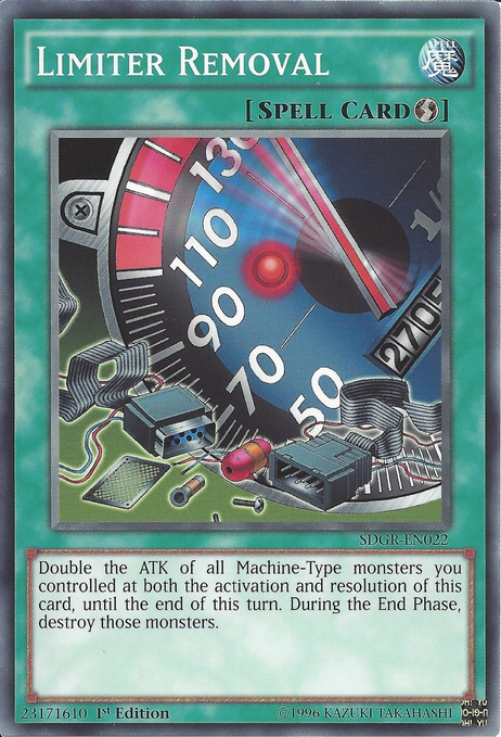 Double the ATK of all face-up Machine-Type monsters you controlled at both the activation and resolution of this card, until the end of this turn. During the End Phase, destroy those monsters.